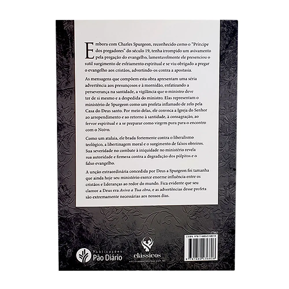 Embora com Charles Spurgeon, reconhecido como o Príncipe dos pregadores do século 19, tenha irrompido um avivamento pela pregação do evangelho, lamentavelmente ele presenciou o sutil surgimento de esfriamento espiritual e se viu obrigado a pregar o evangelho aos cristãos, advertindo-os contra a apostasia. As mensagens que compõem esta obra apresentam uma séria advertência aos presunçosos e à mornidão, enfatizando a perseverança na santidade, a vigilância que o ministro deve ter de si mesmo e a despedida do ministro. Elas representam o ministério de Spurgeon como um profeta inflamado de zelo pela Casa do Deus santo.