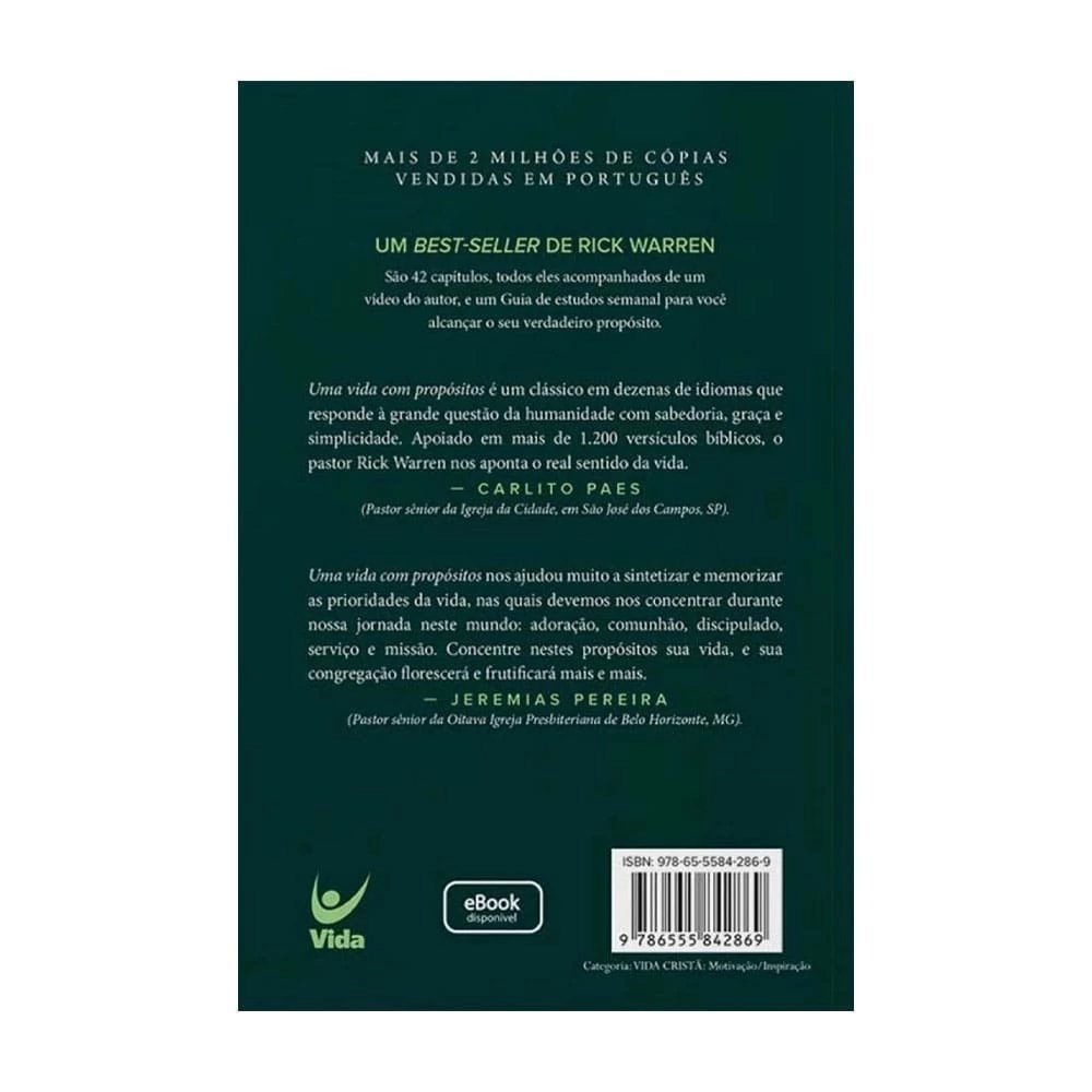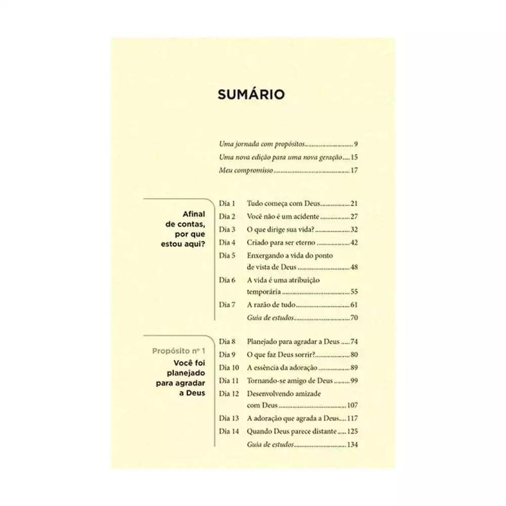 Aclamado em dezenas de idiomas, este livro responde à grande pergunta da humanidade com sabedoria, graça e clareza. Baseado em mais de 1.200 versículos bíblicos, o pastor Rick Warren revela o sentido da vida de forma prática e inspiradora.
